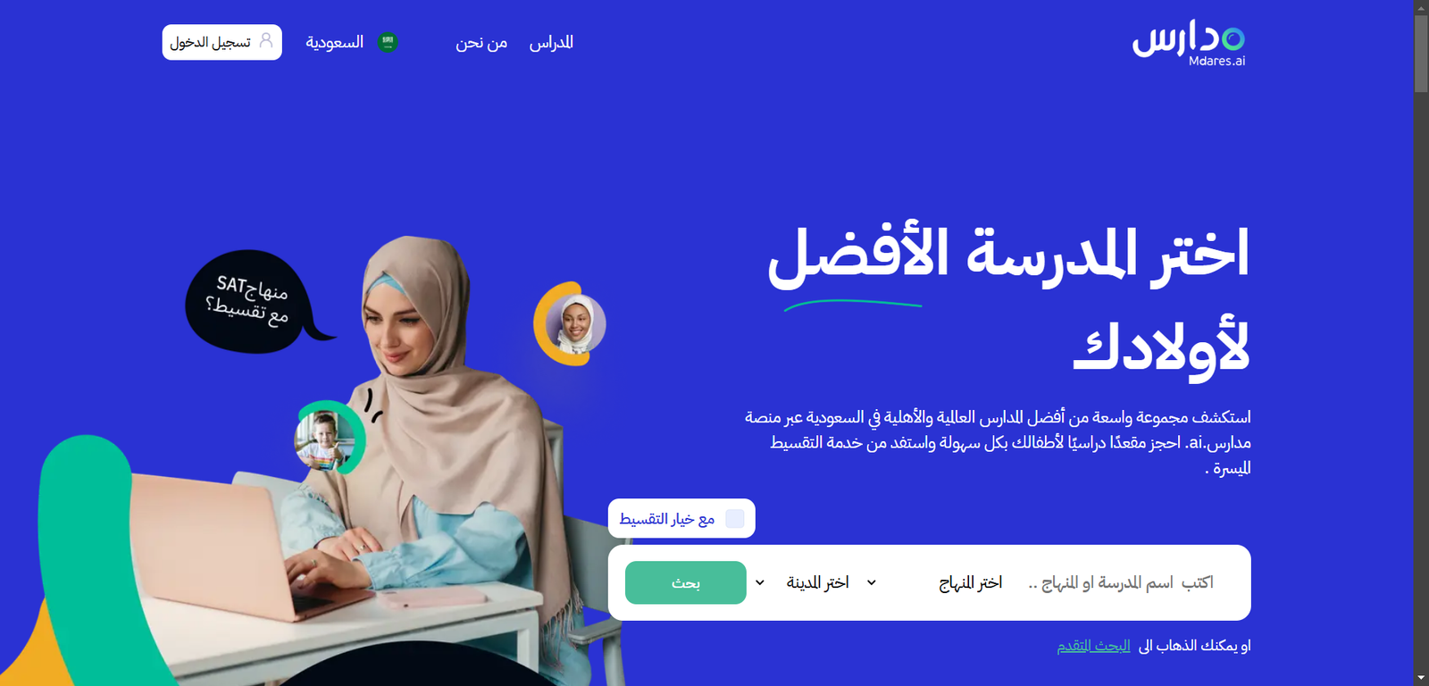 هي محرك بحث مخصص للمدارس في المملكة العربية السعودية. يهدف الموقع إلى تسهيل عملية البحث عن المدارس في مختلف المناطق، ويوفر معلومات مفصلة عن كل مدرسة مثل الموقع الجغرافي، المنهج الدراسي، التخصصات، والأنشطة المتاحة. يتيح للآباء والطلاب العثور على الخيارات التعليمية الأنسب لهم بكل سهولة، مما يساعد في اتخاذ قرارات مستنيرة بشأن التعليم في السعودية.